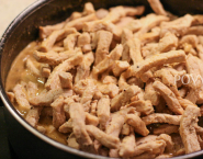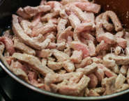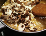 V panvici rozpáľ 1 PL masla, vlož do nej mäso, dochuť soľou, korením a paprikou a opeč zo všetkých strán. Pridaj pripravené omáčku a Worcestershire omáčku, premiešaj a stiahni z ohňa.