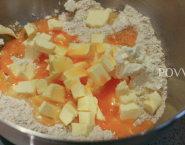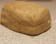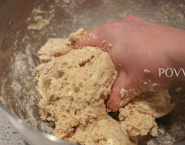 Všetky suroviny spolu zmiešaj najprv rukou v miske. Potom cesto prelož na múkou posypanú pracovnú dosku a uhnieť do vláčneho, homogénneho cesta. To zabaľ do potravinárskej fólie a vlož na 30 minút do chladničky vychladiť.
