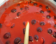 Želatínu namoč do studenej vody, nechaj zmäknúť, potom ju rozpusť v mikrovlnke, alebo na sporáku a primiešaj k čerešňovému pyré.