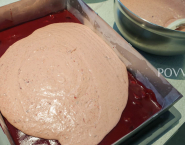 Polovicu čerešňového bavarois nalej na stuhnutý čerešňový puding vo forme. Naň polož druhé tortové dno a aj to zlej zyšným, čeršňovým bavarois a vlož znova dochladničky, alebo do mrazničky vychladúť.