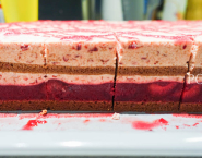Po vychladnutí vyber tortu z mrazničky, (či chladničky), odstráň tortový rámik a fóliu a nakrájaj ju na úhľadné rezy, alebo ju uprav do želaného tvaru.