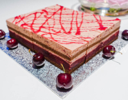 Fantastická torta Claire, inšpirovaná sezónou čerešní. Kakaový základ je prekladaný pikantným, čerešňovým pudingom s kúskami ovocia a sviežim čerešňovým bavarois. Neodolateľná chuť !