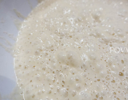 Deň pred pečením zmiešaj prísady na prvé cesto. Skombinuj múku, vodu a droždie v miske a miešaj s metličkou, alebo drevenou lyžičkou, až kým nebude hladké. Zakry plastovým obalom a nechaj kvasiť cez noc asi 16 hodín pri izbovej teplote.