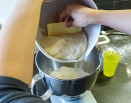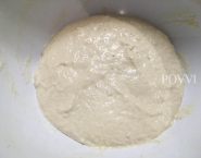 Pomocou kuch.robota s hákom na cesto, premies všetky ingrediencie cesta na strednej rýchlosti 10-15 minút. Cesto musí byť po vymiesení ako krém (viď foto).