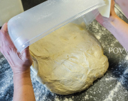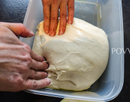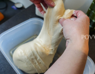 Potom ho v nádobe znova natiahni do obdĺžnika a zlož z každej strany vlhkými rukami a nechaj ho stáť ďalších 45 minút.