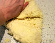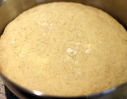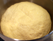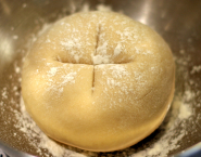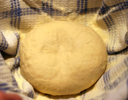 Väčšiu misu vylož čistou utierkou a tú posyp hrubou múkou. Vymiesené cesto do nej vlož a prikry vlhkou utierkou. Nechaj ho v nej kysnúť až do 3-násobku svojho objemu.