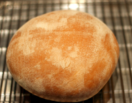 Vykysnuté cesto teraz opatrne prelož na papierom na pečenie (alebo fóliou) vyložený plech a nechaj piecť cca.45 minút pri teplote 170-180°C(teplovzdušné rúry -20°C). Po upečení nechaj chlieb pred nakrájaním ochladnúť na mriežke.