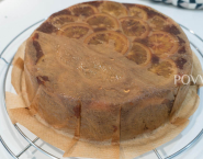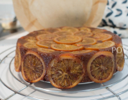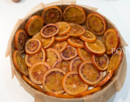 Tortovú formu s priemerom 20 cm vymaž maslom a vylož papierom na pečenie. Vymaž maslom jemne aj papier a plátky pomaranča poukladaj na dno. Sirup odlož.