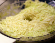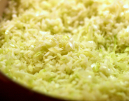 Kapustu postrúhaj napríklad v kuchynskom robote. Na oleji opraž cibuľku do sklovita. Pridaj kapustu, rascu aj cukor, dobre premiešaj, posoľ a dus do mäkka, až sa všetka šťava odparí. Teraz je kapusta pripravená ako polotovar na Halušky alebo Šarišské kapustníky.