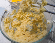 Ručným mixérom spolu vyšľahaj 180 g masla s cukrom, až je cukor v masle rozpustený (približne 3-4 minútky). Potom k nemu prišľahaj aj žĺtky.