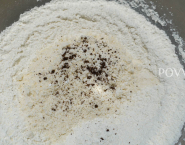 Guličky korenia, klinčeky a zrniečka vanilky spolu podrv v mažiari. V samostatnej miske spolu zmiešaj mandľovú múku a práškový cukor.