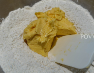 Vo väčšej mise najprv spolu zmiešaj múku s mandľovou zmesou a korením. Potom do múťnej zmesi primiešaj aj maslovú zmes a múku do nej zapracúvaj opatrne, aby bolo cesto vláčne. Hotové cesto zabaľ do fólie a odlož do chladničky na dve hodinky odpočinúť.