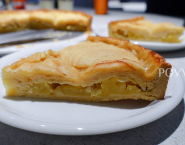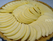 Zvyšné cesto taktiež rozváľaj na veľkosť torty a prikry ním navrstvené jablká. Okraje znútra jemne popritláčaj a prebytočné cesto z okrajov orež.
