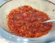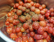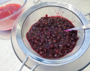 Egreše var spolu so sirupom z bazových kvetov, limetkovou šťavou a korením. Potom celú zmes preced cez sitko na jemné coulis.
