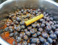 Pomaranče odšťav, 100 ml z nich oddeľ a zvyšok primiečaj k čučoriedkam v hrnci. Pridaj zvyšné korenie a ak treba aj trocha cukru a priveď do varu.