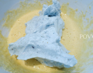 Keďže egrešové bavarois je troška kyslasté, zvolila som jemnú ozdobu talianskym meringue (pena z bielkov) a čučoriedkami.