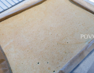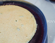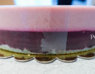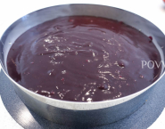Piškótu priprav podľa receptu opísaného v linku, ale do bielkov daj namiesto normálneho cukru, cukor z rozmixovaných, kandizovaných fialiek. Cesto po upečení a vychladnutí uprav do tvaru na tortu a vlož do fóliou na bavarois vyloženého rámiku.