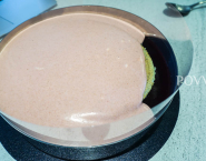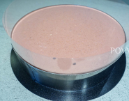 Hotový, pudingový krém prelej na tortové dno vo forme, prilož druhým tortovým dnom a vlož do chladničky stuhnúť.