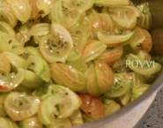 Egreše umy, odstopkuj, nakrájaj na 1/4 a zmiešaj s vodou v hrnci. Var ich počas piatich minút, kým zmäknú. Pretlač ich cez sito.