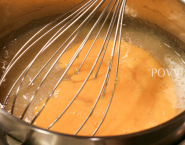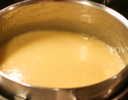 K egrešovému pyré pridaj cukor, bazový sirup, maslo a rozšľahané vajcia. Šľahaj celú zmes nad parou, kým sa masa zhustne a naberie na objeme. To bude trvať asi 20 minút.