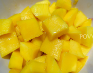 Priprav si mango. Olúpaj ho, nakrájaj na kocky a zmiešaj ho v mise s kurkumou a soľou. Na chvíľku odlož.