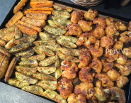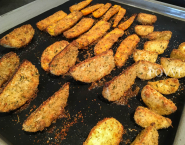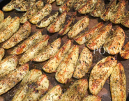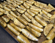 Zemiaky omasti olivovým olejom, posym osoleným Gréckym mixom a peč na zvláštnom pekáči počas 30 minút.