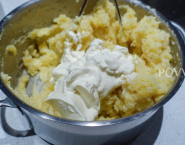 Zemiaky uvar v jemne osolenej vode. Spoločne s kyslou smotanou, muškátovým orieškom, soľou a korením ich spracuj do zemiakového pyré. Nechaj pyré ochladnúť.