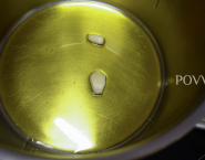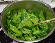 Olivový olej rozpáľ v hrci a strúčiky cesnaku na ňom opeč do zlatista. Potom ich z hrnca vyber a rýchlo primiešaj špenát.