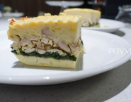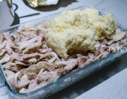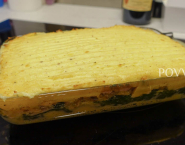 Zapekaciu misku vymaž tukom a na dno nanes vrstvu zemiakového pyré. To posyp jemnou vrstvou strúhaného Pecorina a nanes vrstvu špenátu a na ňu ulož vrstvu zvyškov z moriaka. Nakoniec znova navrstvi zemiakové pyré.
