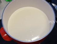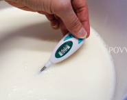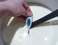 Najprv som mlieko pasterizovala a to nahriatím na 60°C. Podľa špecialistov Milchemy to úplne stačí. Po pasterizácii som ho znova ochladila na 35°C.