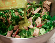 Nakoniec šalát zalej dressingom a podávaj s tmavým pečivom.