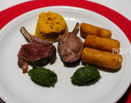 Jahňacie rebierka podávaj na predhriatych tanieroch spolu s mrkvovo-badiánovým pyré, bylinkovou salsou a kroketami.