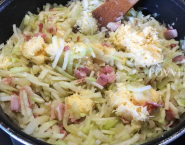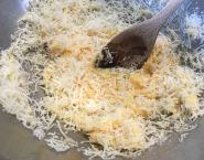 Vajíčko zmiešaj s 2/3 syra, pridaj ho ku kalerábu a prudko premiešaj, aby ním bol kaleráb rovnomerne pokrytý a vajíčko sa nestalo praženicou. Stiahni ho z tepla.