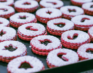 1. Cesto na pomúčenej doske rozváľaj na hrúbku 2,5 mm (nie príliš na tenko) a fromičkami z neho povykrajuj rôzne tvary. Ja som použila vykrajovátko na linecké koláčiky. Potom koláčiky prelož na papierom, či fóliou na pečenie vyložený plech a peč max.10 minút. Po upečení ich nechaj vychladnúť na mriežke. Spodnú časť namaž Bubble lekvárom →. Vrchnú časť najprv posyp práškovým cukrom a potom ich ulož na spodnú časť – presne ako u lineckých koláčikov.