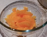Pomaranče olúpaj nožom spôsobom à la vif (nájdeš opísaný a nafotený v sekcii TIPY na POVVI), jednotlivé mesiačiky prípadne prekroj a šťavu zachyť do misy.