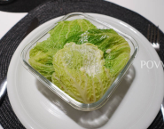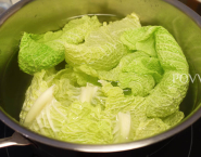 Vo veľkom hrnci postav variť osolenú vodu. Keď začne vrieť, vlož do nej kelové listy a nechaj ich v nej počas 10 minút blanšírovať. Potom ich okamžite sceď a ihneď prelož do misky s ľadovo-studenou vodou, aby si listy uchovali svoju zelenú farbu.