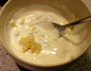 Olúpaj a pretlač do misky cesnak. Pridaj k nemu kyslú smotanu a kapary a dobre premiešaj. Vlož do podávania do chladničky. Zapekacie misky prelož na taniere. Zemiaky naservíruj do menších misiek, prelej lyžicou pripravenej cesnakovej smotany, prípadne posyp nasekanou pažítkou a podávaj k papilotom.