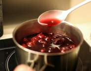 Kompót sceď a višne daj nabok. Zo štavy trocha odber a zmiešaj s maizenou. Zvyšok šťavy priveď do varu a pomaly primiešavaj maizenovú zmes, až omáčka zhustne. Teraz k nej primiešaj višne a nechaj troška spolu ohriať.