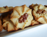 Ružičky nastriekaj za pomoci cukrárskeho vrecka, na papierom na pečenie, alebo fóliou vyložený plech. Do prostriedka ružičky jemne vtlač polovicu orecha.