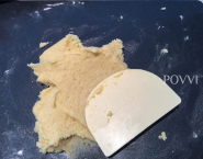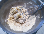 Mäkké maslo zmiešaj s marcipánom. Pridaj preosiatu múku na 3 krát a zakaždým masu dobre premiešaj.