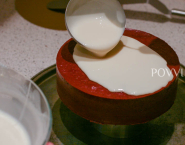 Čokoládovú glazúru priprav podľa receptu v linku a nanes na tortu, práve vybratú z mrazničky a upravenú na poliatie na podložke. Prelej ju glazúrou a keď táto začne tuhnúť, prelož tortu z podložky na tortový dekoračný kartón.