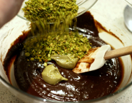 Roztop čokoládu s maslom v bain-Marie, alebo v mikrovlnnej rúre. Pridaj cukor a dobre premiešaj. Rozšľahni vajcia, pridaj ich a dobre premiešaj. Pridaj preosiatu múku a znova dobre premiešaj. Pistácie nasekaj nahrubo a pridaj ich spolu s pistáciovou pastou. Áno, znova dobre premiešaj. Tak jak suco, dzifky mojo! Vezmi 6 jednotlivých silikónových formičiek na pečenie (ak používaš iné, dobre ich vymasť maslom). Zmes rozdeľ zmes do formičiek a vlož na 1 hodinu do chladničky.