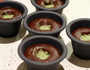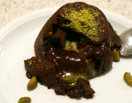 Rúru predhrejte na 210°C (teplovzdušné rúry -20°C). Pistáciovú plnku vyber z mrazničky a jednotlivé kocky vtlač do moelleux. Vlož do rúry a peč asi 12 minút (čas pečenia závisí od typu rúry). Po upečení moelleux vyberz rúry, nechaj 10 minút postáť a moelleux prelož na taniere.