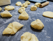 Po hodine cesto premies a rozdeľ na 17-20 rovnakých kúskov (záleží od toho, či z neho spravíš 17 kúskov o hmotnosti 60 g, alebo 20 o hmotnosti 50g.). Tie najprv spracuj na okrúhle buchtičky. Potom každú jemne rozváľaj a naplň pudingovým krémom za pomoci cukrárskeho vrecka so širšou špičkou. Buchtičky zatvor a prelož na papierom, alebo fóliou vyložený plech. Nechaj ich 30 minút prikryté podkysnúť.