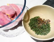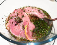 Začni marinovaním bažantích pŕs. V mise zmiešaj suroviny na marinádu misy a prsia do nej ponor tak, aby ich marináda zakryla. Prípadne vlož prsia aj s marinádou do ziplock vrecka, vytlač vzduch a vrecko uzavri. Nechaj cez noc v chladničke.