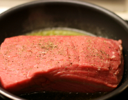 Rosbief zhora a zo spodu posoľ a posyp korením. Rúru predhrej na 180°C. V pnavici rozpáľ tuk a mäso na ňom z oboch strán opeč, rátajúc 2 minútky na každú stranu, kým sa vytvorí zlatistá kôrka. Tuk ale nenechaj spáliť. Prelož rosbíf do pekáča, bez pridania tuku, len zvrchu ho troška oblož tukom. Mäso vlož do rúry a peč 25 až 30 minút na kilo mäsa (pre extra rosé stačí mäso piecť len 20 minút). Mäso kontroluj na dotyk – ak je jemné a príliš nevzdoruje, nechaj ho piecť 5-10 minút dlhšie (tu záleží nie len od mäsa, ale aj od rúry.) Upečené mäso z pekáča vyber, ale nepichaj doň a zaviň ho do alobalu. Nechaj ho 20 minút odpočinúť a môžeš podávať.