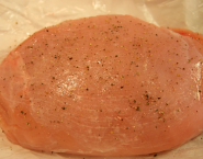 Morčacie prsia osolíme, okoreníme a opražíme na tuku na panvici z oboch strán. Preložíme do pekáča, zalejeme troškou bujónu, alebo vody a obložíme stonkami čerstvého tymiánu a rozmarínu.