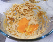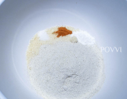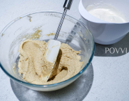 Zmiešaj spolu mandľovú a pohánkovú núku, soľ, škoricu a sódu bikarbónu (alebo prdopeč). Maslo vyšľahaj s 200 g cukru do peny a potom k nemu primiešavaj po jednom žĺtky.