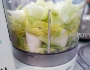 Kúsky póru a zeleru vlož do kuchynského robota a posekaj na jemno, ale nie na kašu. Zeleninu prelož do väčšej misy a pridaj ovsenné vločky, syr, strúhanku a vajíčka. Dochuť soľou a korením.