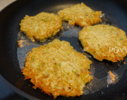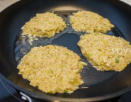 V panvici rozpáľ trocha oleja a lyžicou nanášaj placky, ktoré opeľ z oboch strán do zlata.